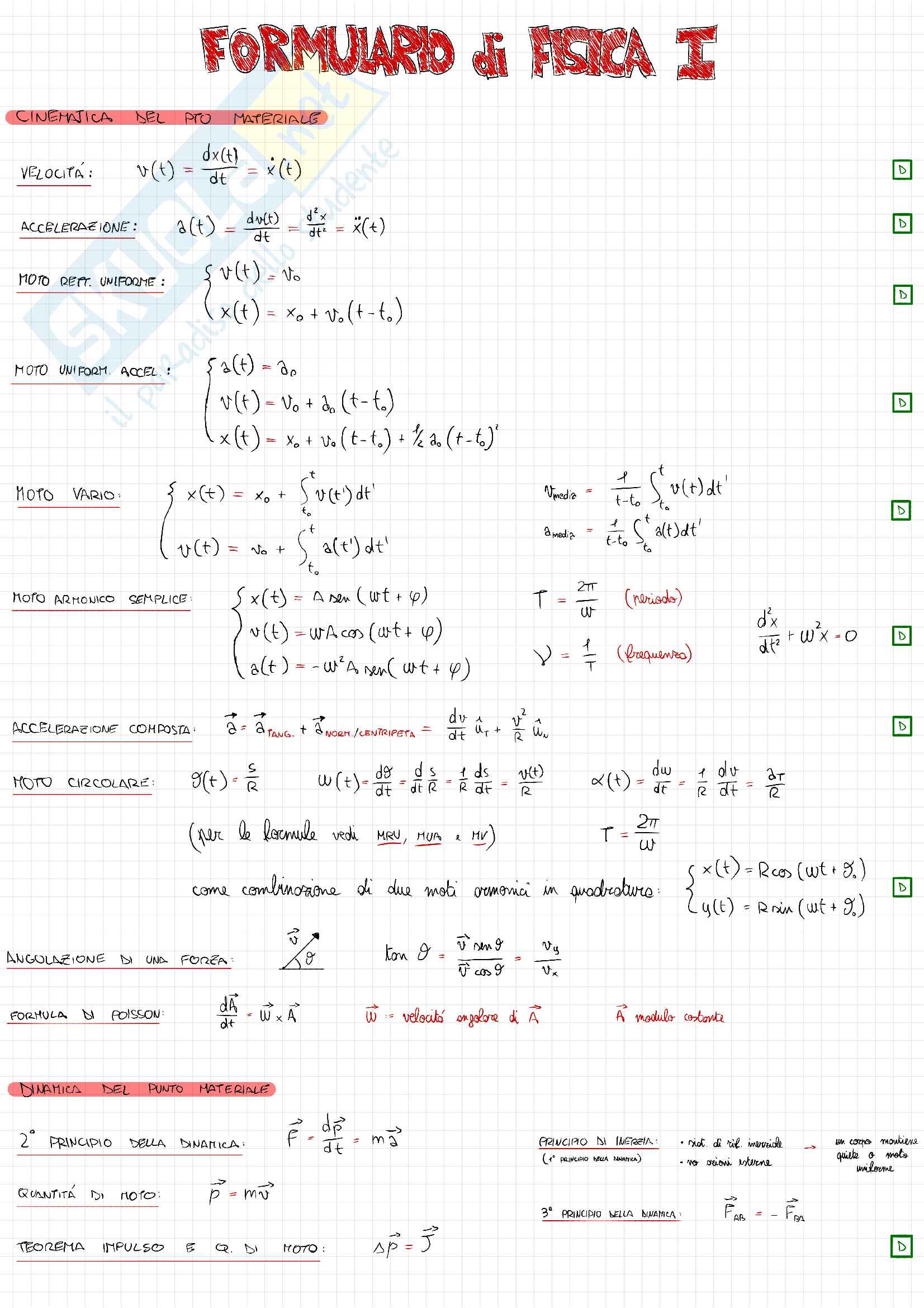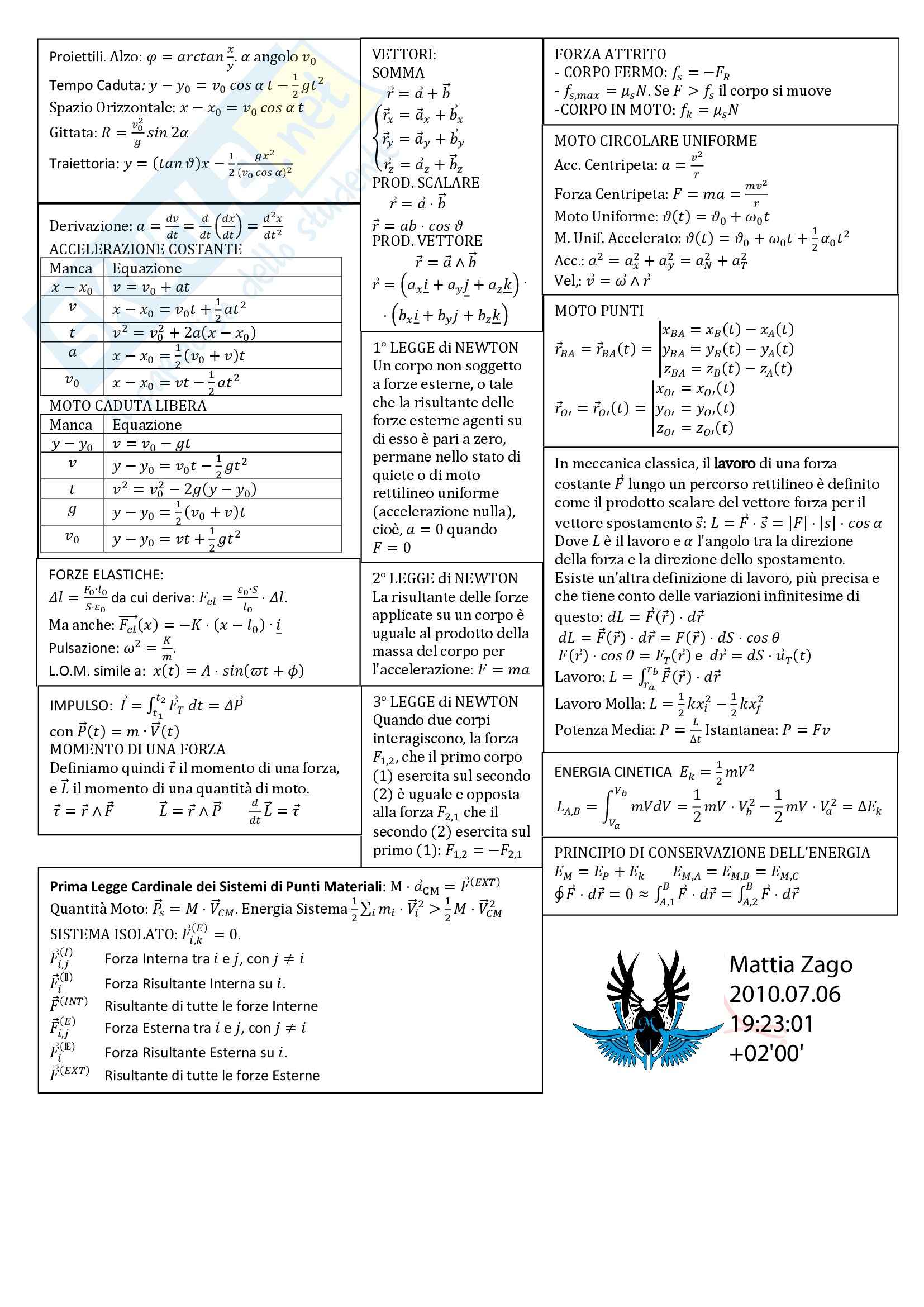 Formulario di fisica, formule per svolgere esercizi.
